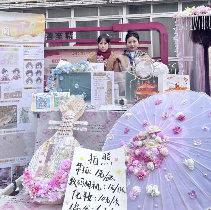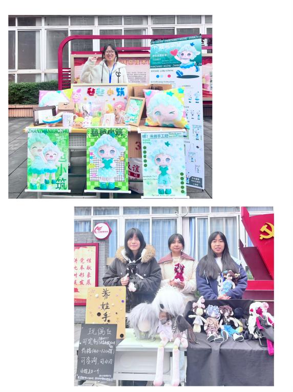 工艺美术专业展售区则划分出多个特色板块,让人目不暇接。“现场书法”板块,学子挥毫泼墨,笔走龙蛇间,一幅幅笔力遒劲的书法作品跃然纸上,引得参观者阵阵喝彩;“毡毡小筑”板块中,毛茸茸的羊毛毡挂件、摆件造型各异,萌趣十足,成为师生争相选购的热门单品;“和月阁”展区主打传统手工艺品,刺绣团扇、手工琵琶等臻品精致典雅,尽显传统工艺之美。