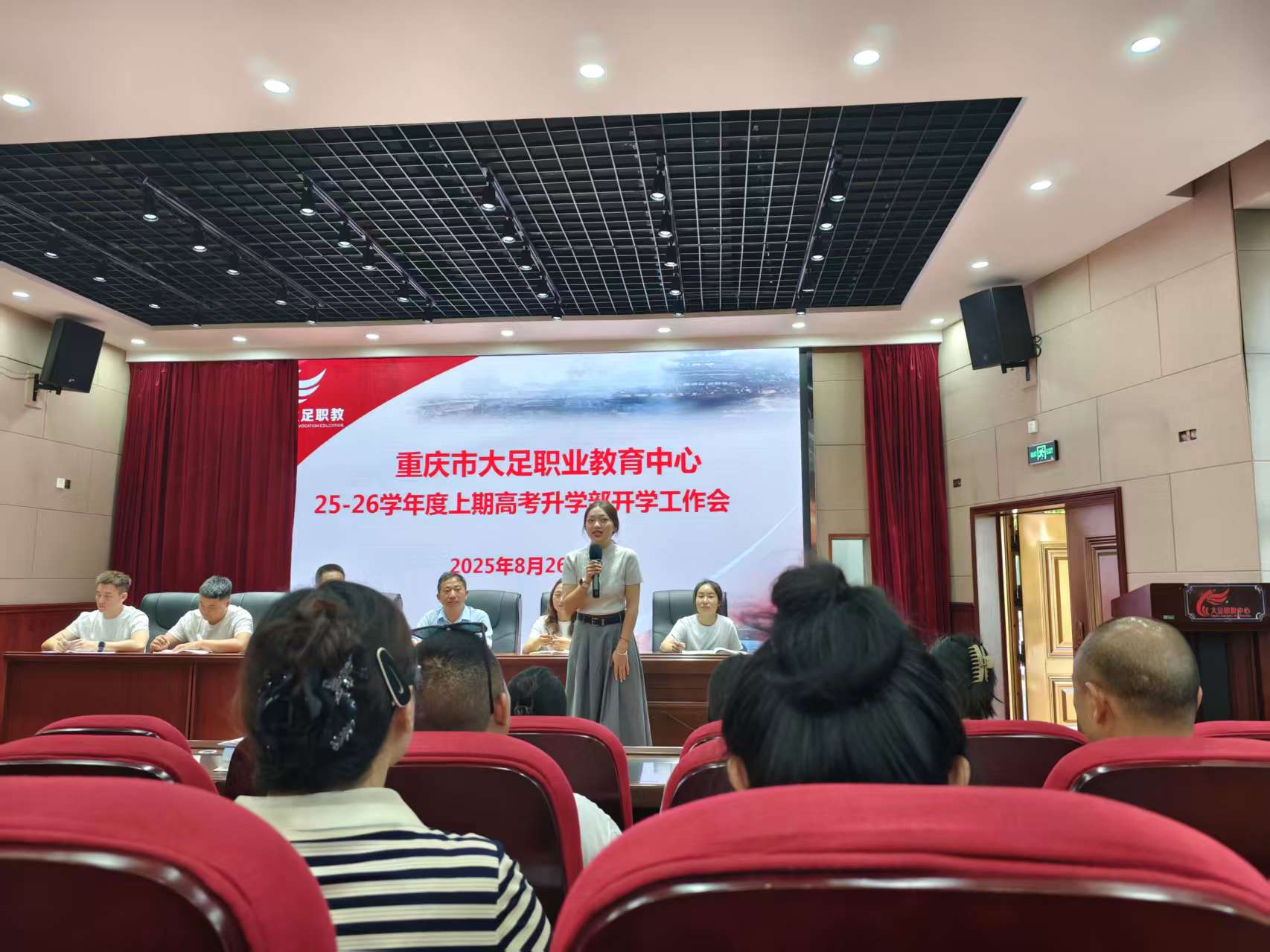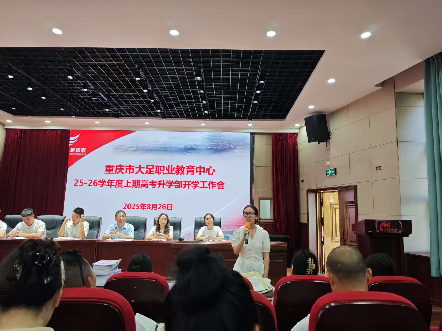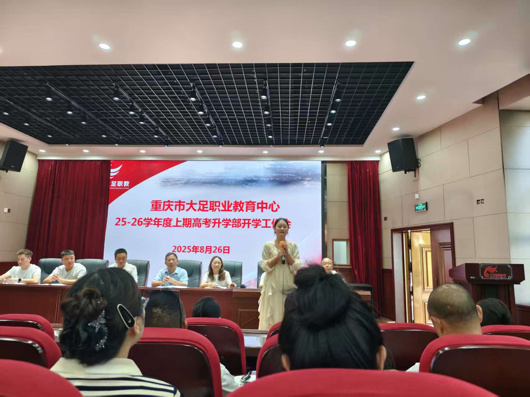 时维九月,序属三秋伴随着收获季节的到来,我们迎来了充满希望与挑战的新学期。为全面部署新学年的各项工作,确保开学工作平稳、有序、高效进行,重庆市大足职教中心高考升学部于2025826日在第三学术报告厅组织召开新学期全体教师大会。本次会议旨在统一思想、明确目标、凝聚力量,共同开启学校发展的新篇章。会议由学校党委专职副书记胡广强携高考升学部主任钟仕娟、副主任粟廷富及高考升学部管理人员共同出席。