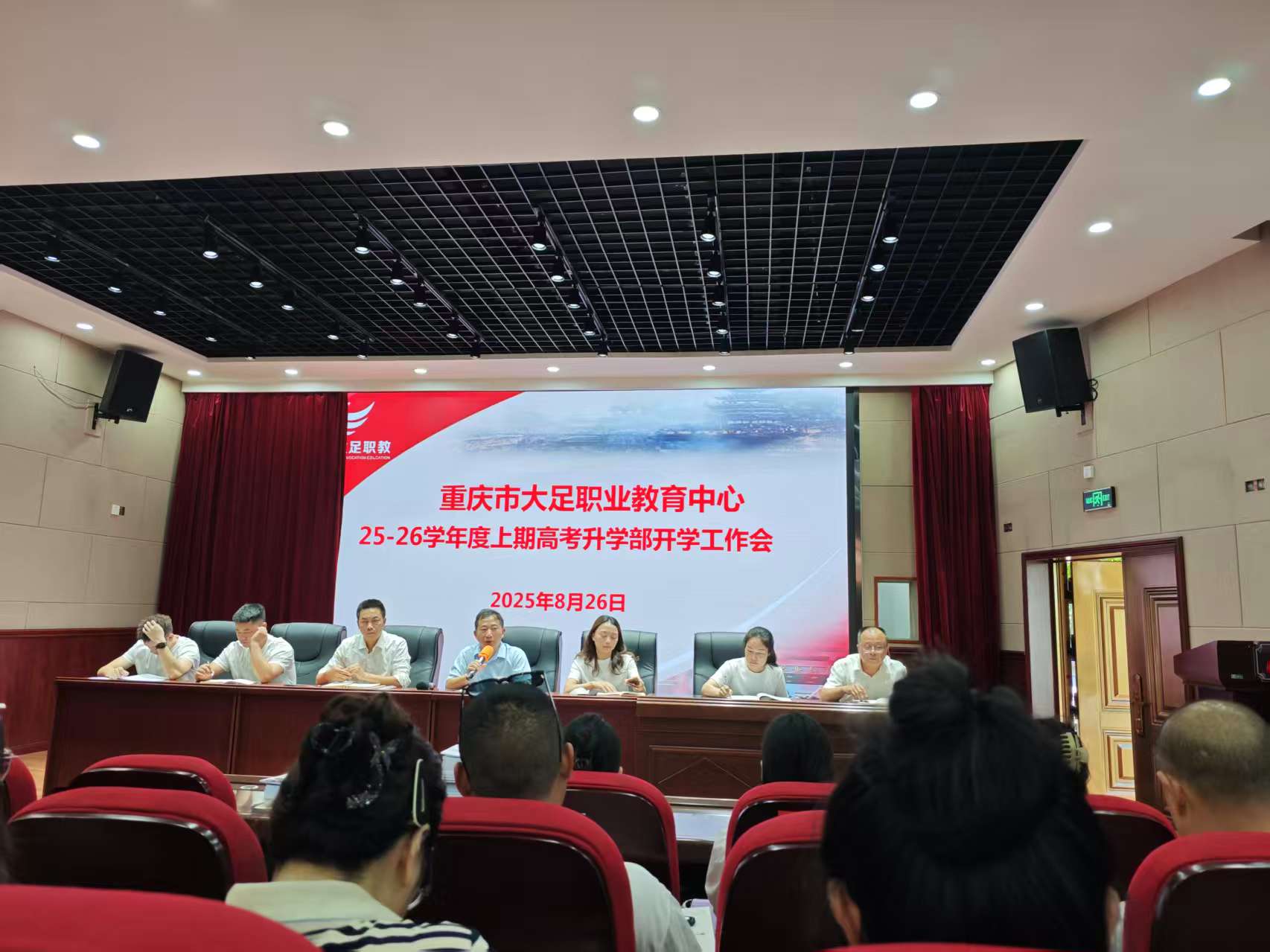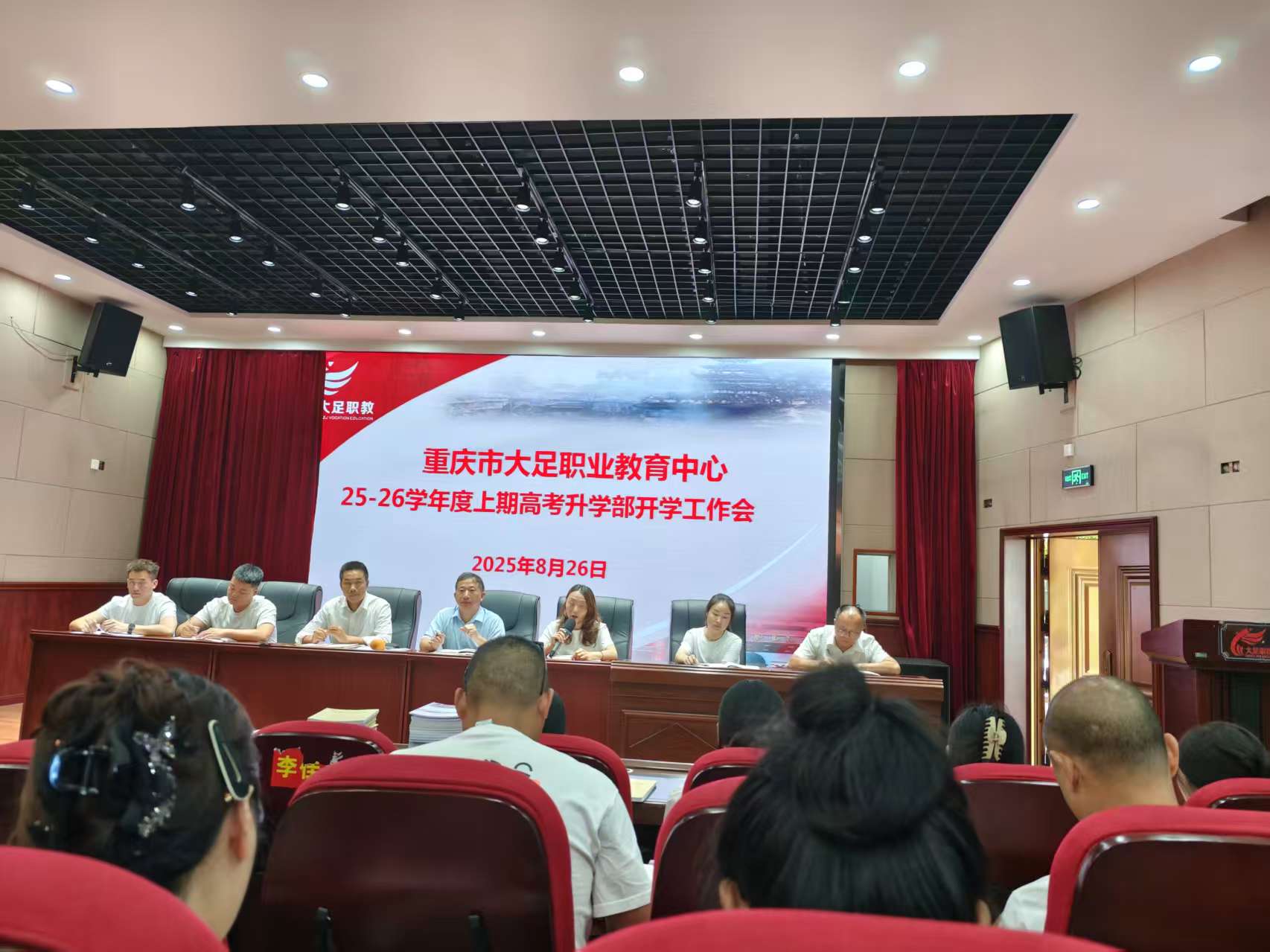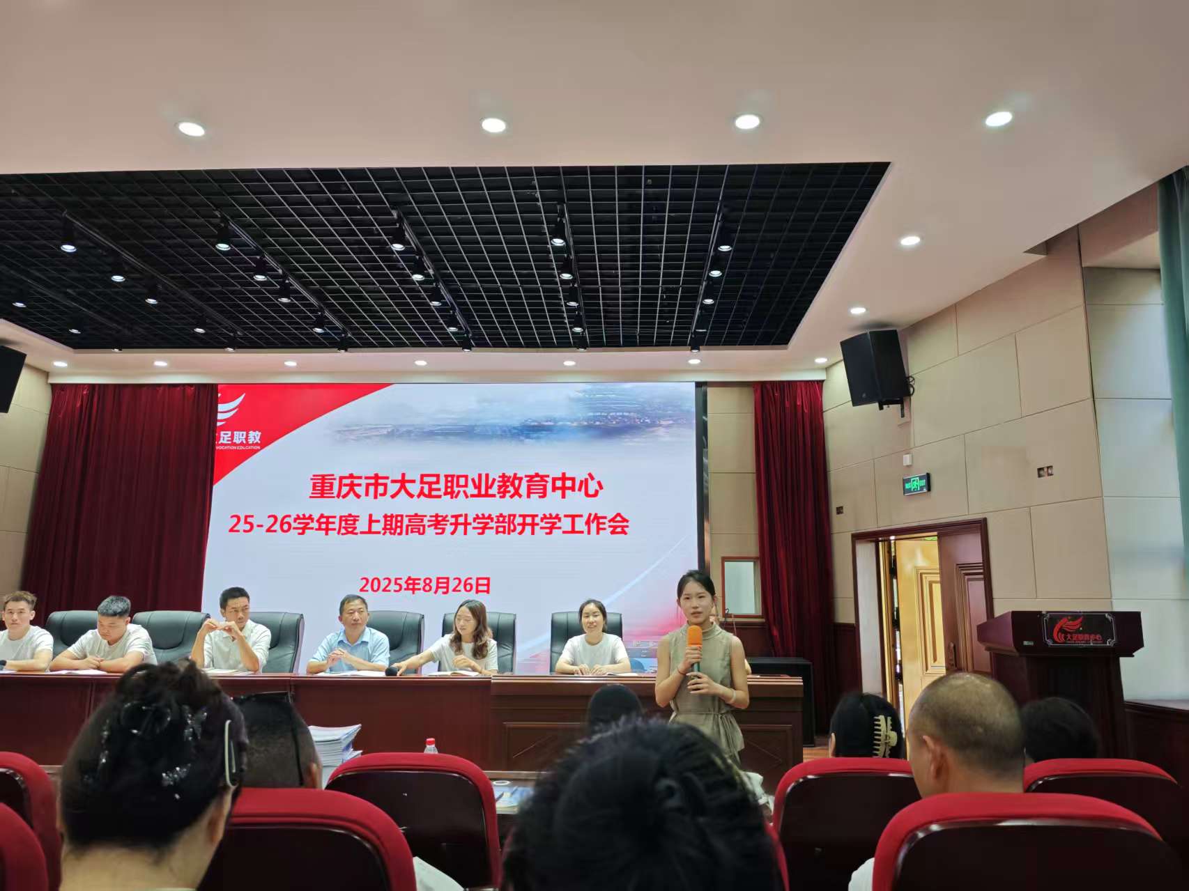 时维九月,序属三秋伴随着收获季节的到来,我们迎来了充满希望与挑战的新学期。为全面部署新学年的各项工作,确保开学工作平稳、有序、高效进行,重庆市大足职教中心高考升学部于2025826日在第三学术报告厅组织召开新学期全体教师大会。本次会议旨在统一思想、明确目标、凝聚力量,共同开启学校发展的新篇章。会议由学校党委专职副书记胡广强携高考升学部主任钟仕娟、副主任粟廷富及高考升学部管理人员共同出席。