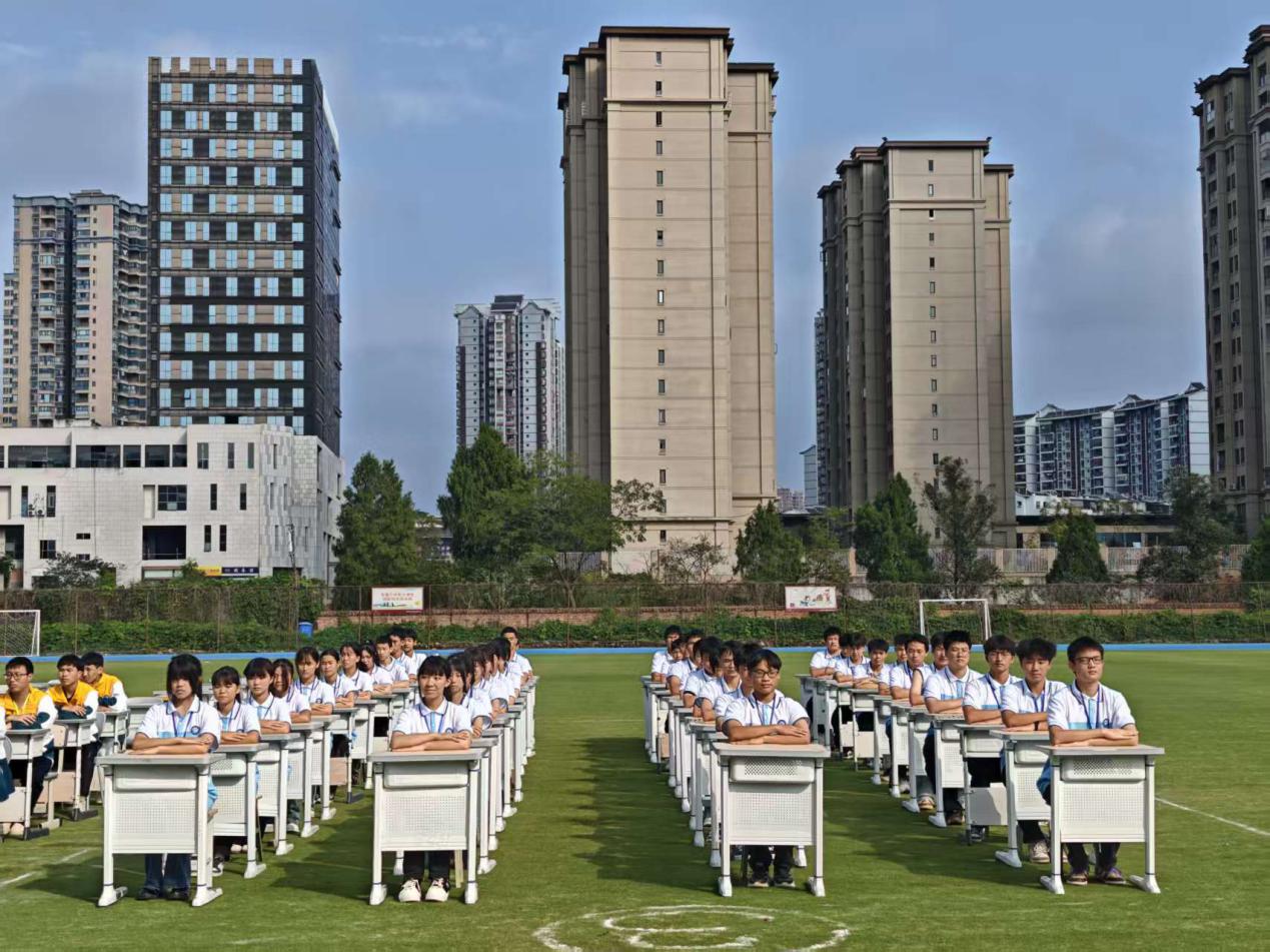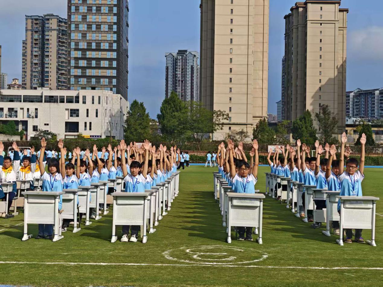 比赛当天,海棠校区运动场上彩旗飘扬、气氛热烈。各参赛班级按照抽签顺序依次登场,伴随着激昂的韵律,学子们迈着整齐的步伐进入赛场,展开精彩角逐。