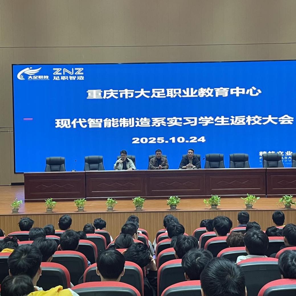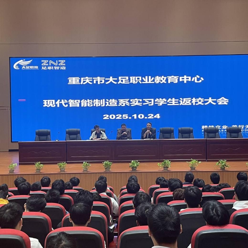 2025年12月24日,职教中心现代智能制造系于仁智楼报告厅组织召开实习学生返校大会。智能制造系主任刘琦琪、智能制造系副主任朱文彬以及德育专干张亚洲老师出席本次会议。
