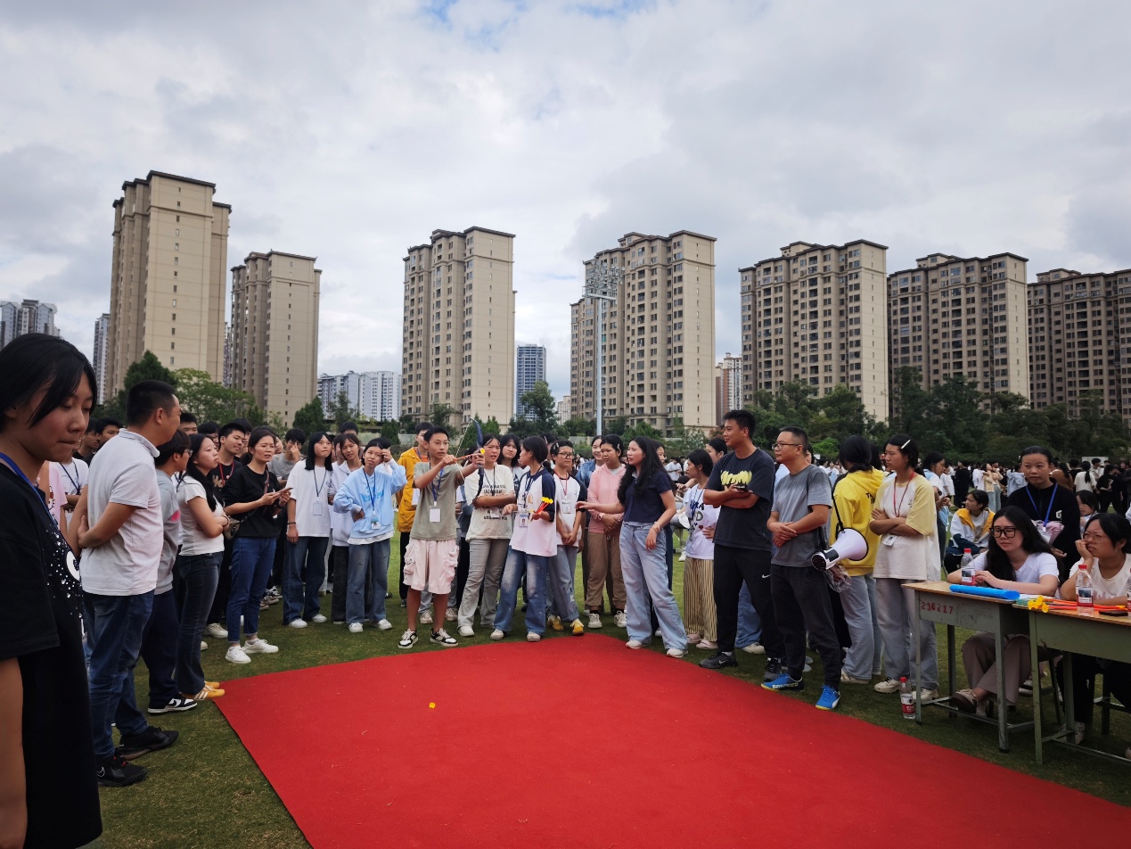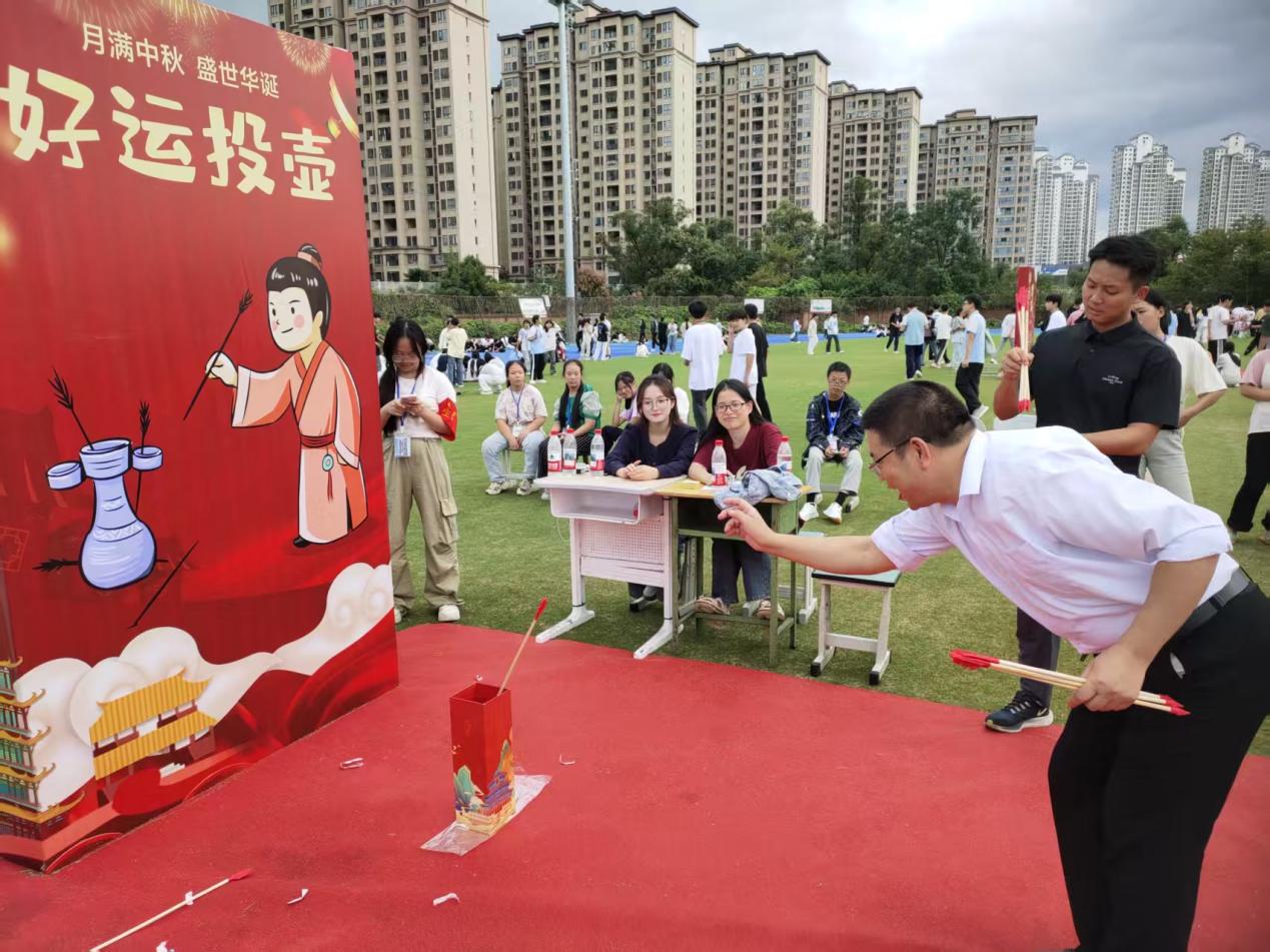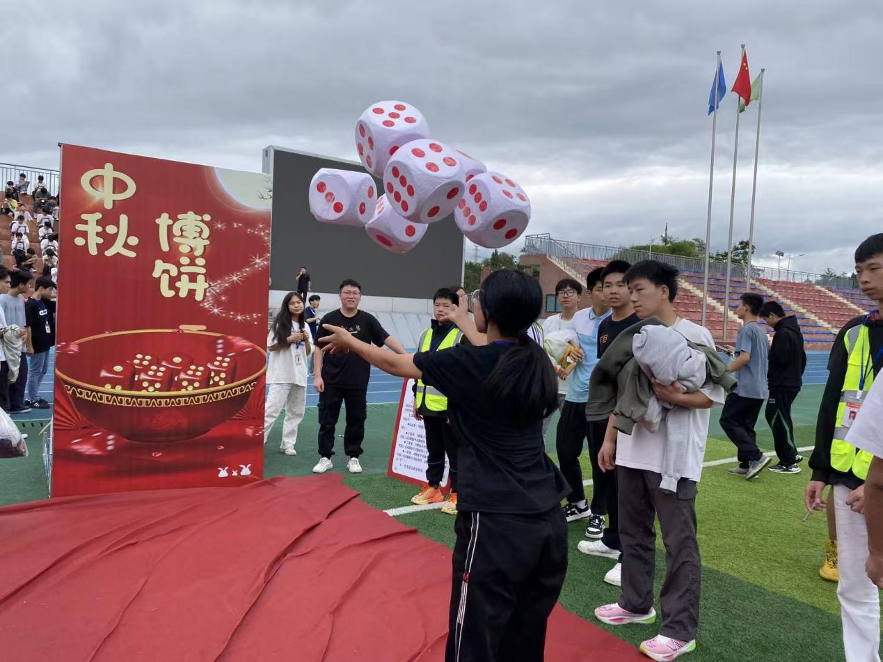 9月29日,校园内最热闹的当属温情游园会。现场设置了多个趣味游戏摊位以及丰富的奖品,吸引了大批师生参与。