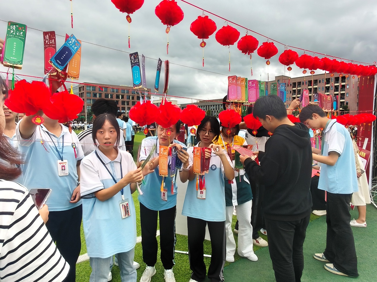 猜灯谜区,红绳上悬挂着让人眼花缭乱的谜题,师生们驻足思索、相互探讨,在破解谜题的过程中感受传统文化的魅力。