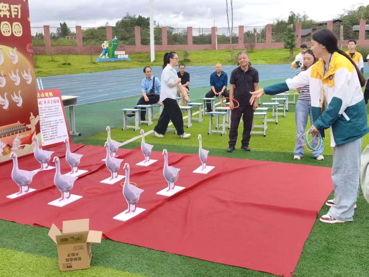 嫦“鹅”本月套圈圈游戏区笑声不断,大家瞄准目标、精准投掷,不少老师表示梦回童年放学时套圈的快乐,学生们体验着收获“战利品”的喜悦。
