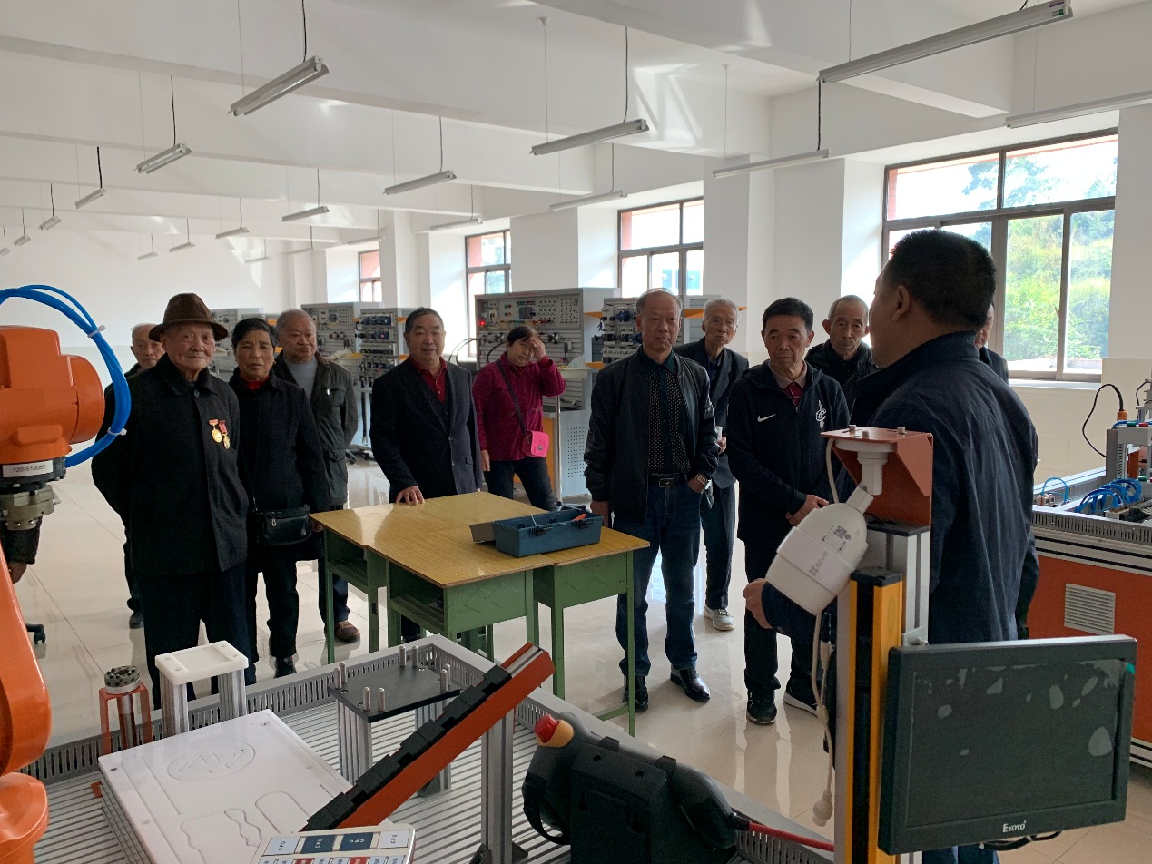 座谈会前,学校工会组织退休老教师参观了学校精工楼装备一新机电部汽修室、机器人实作实、航空实训室、旅游实作室等功能室,让每位老教师亲身感受了学校巨大变化和学校发展的美好前景。
