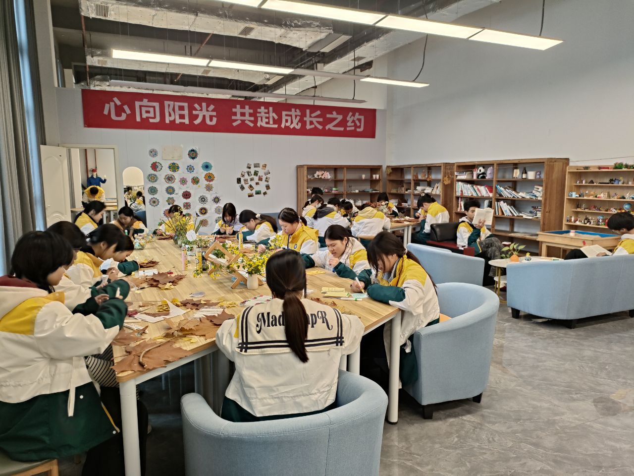预热与创作活动已率先在部分班级展开。心理健康中心的老师们巧妙利用课堂时间,组织同学们以小组为单位,开展心理书籍的深度阅读与心得分享,并指导大家动手制作形式多样的阅读分享小册。高考升学部的同学们也已热情投入,开始了首批“落叶诗笺”作品的创作与部分小册子的初步制作与部分布展,为后续的集中展示积累了丰富素材,提供了参考。