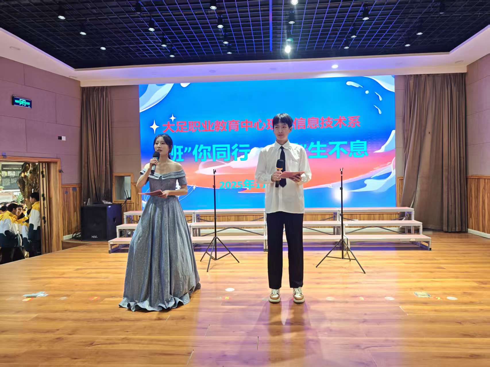 冬日暖阳浸润校园,青春旋律激荡人心。为丰富校园文化生活,凝聚班级向心力,展现现代信息技术系学子朝气蓬勃、团结奋进的精神风貌,11月28日,重庆市大足职业教育中心现代信息技术系《“班”你同行,“声”生不息》班歌比赛在第二学术报告厅隆重举行。系副主任岳菊,资深音乐教师唐乐怡,系部管理人员郑东梅等同志担任专业评委,现代信息技术系主任邹汝全莅临现场致辞指导,全体师生共同见证这场充满热爱与力量的视听盛宴。