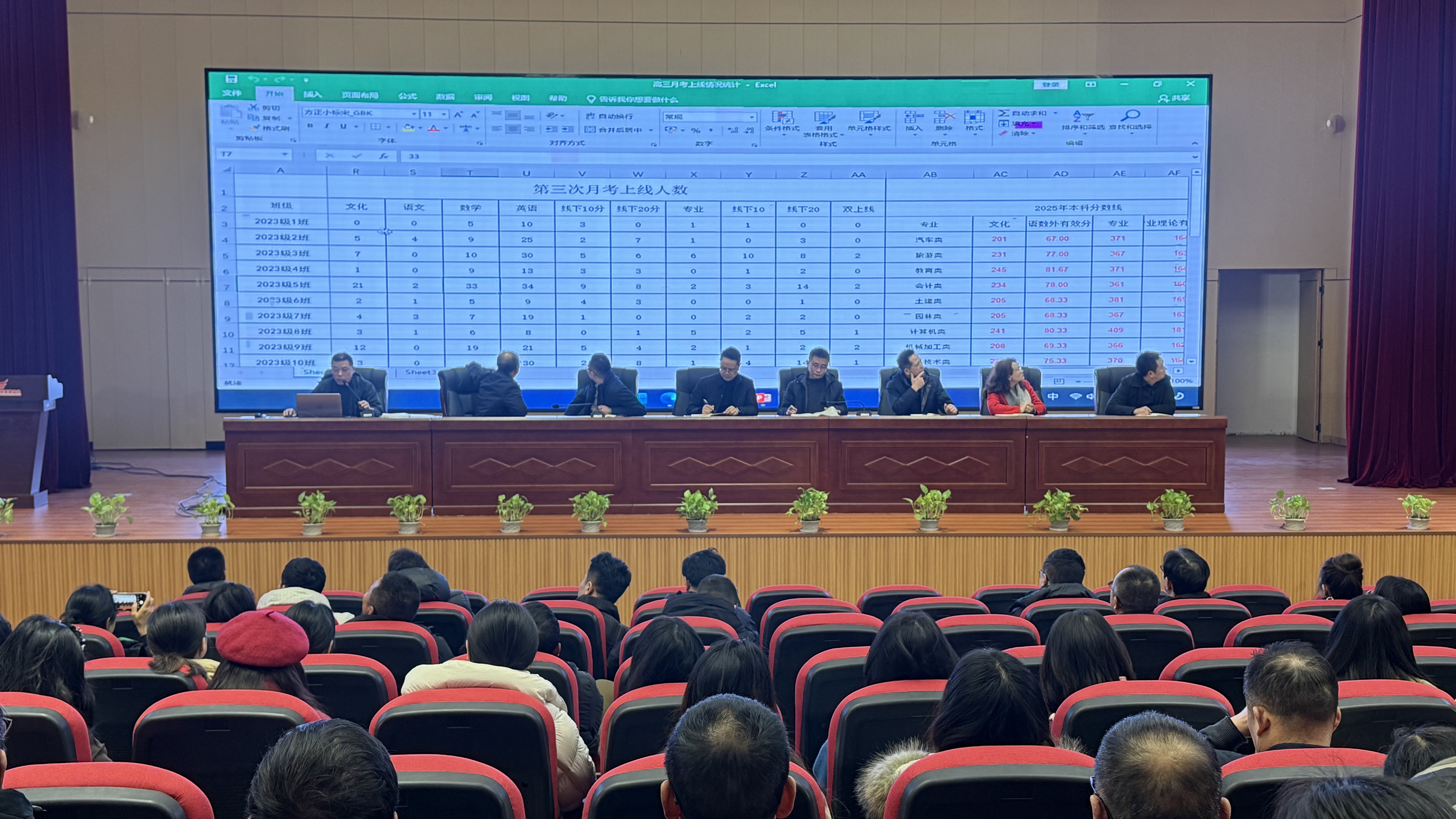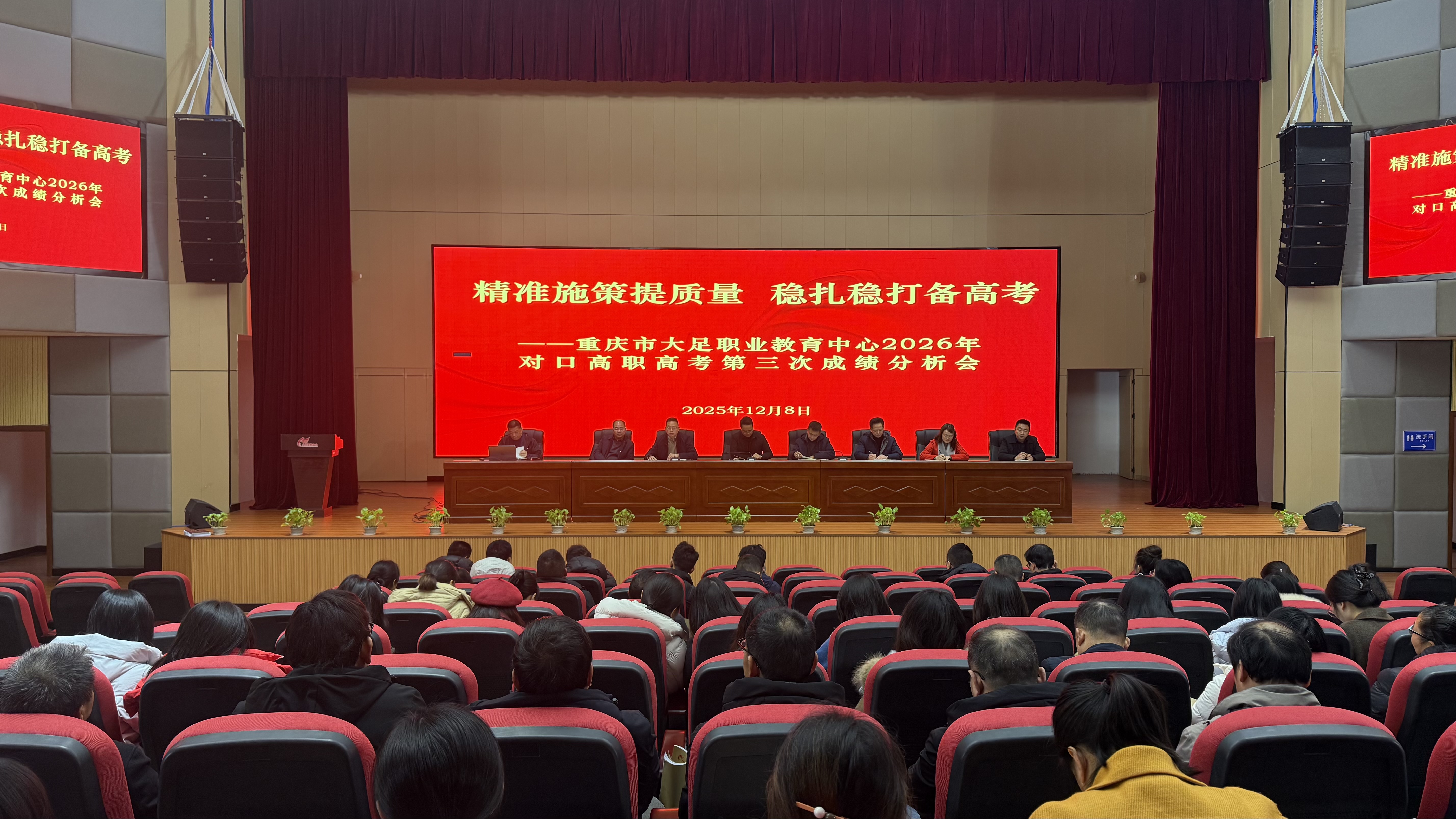 2025年12月2日-12月8日,职教中心高考升学部分别组织召开了2025、2024、2023级高考升学班、综合高中班、艺术高考班的半期成绩分析会。本次会议旨在全面总结半学期以来高考升学部教育教学工作成效,精准诊断学情、把脉教学,明确下一阶段复习备考方向。学校党委书记杨朝均,学校党委副书记、校长封吉泉,学校分管教学副校长李再明,高考升学部主任钟仕娟,高考升学部副主任粟廷富,教务处与教研处负责人及全体高考班任课教师齐聚一堂,共同分析数据,研讨策略,凝聚共识。