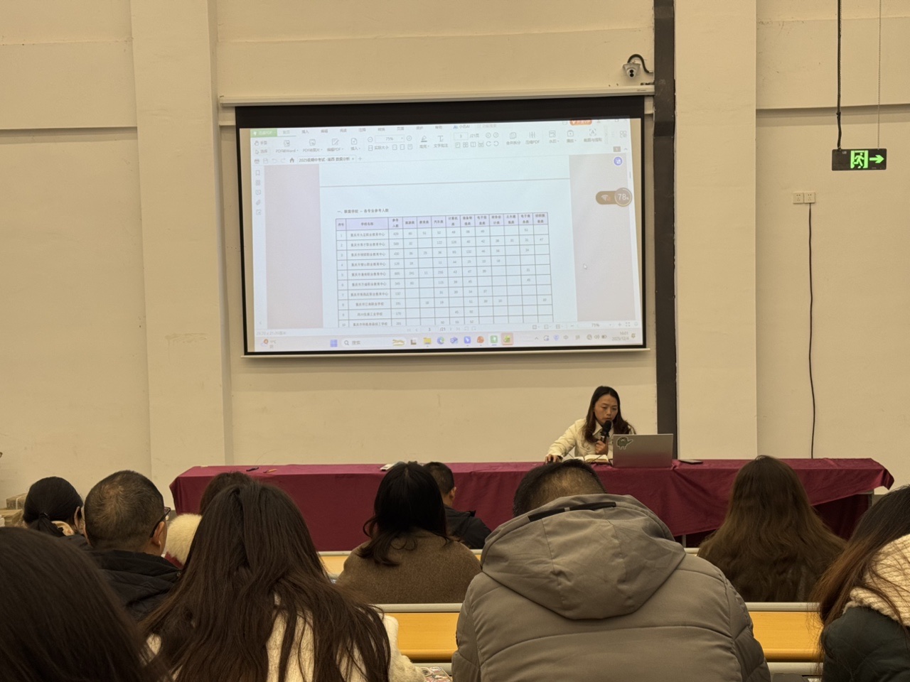 会议首先由高考升学部主任钟仕娟对本次半期考试的整体情况进行了数据化、多维度的详尽分析。分析报告不仅横向对比了各班级、各学科的平均分、优秀率、及格率及分数段分布,还纵向追踪了与上学期期末成绩的波动情况,重点关注了临界生、进步生与薄弱学科的动态变化。报告用数据说话,客观清晰地呈现了当前备考阶段的优势与不足,为后续教学提供了精准的靶向。