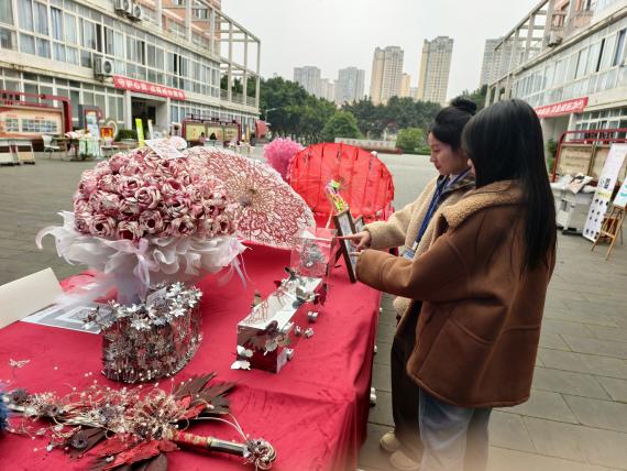 工艺美术专业展售区则划分出多个特色板块,让人目不暇接。“现场书法”板块,学子挥毫泼墨,笔走龙蛇间,一幅幅笔力遒劲的书法作品跃然纸上,引得参观者阵阵喝彩;“毡毡小筑”板块中,毛茸茸的羊毛毡挂件、摆件造型各异,萌趣十足,成为师生争相选购的热门单品;“和月阁”展区主打传统手工艺品,刺绣团扇、手工琵琶等臻品精致典雅,尽显传统工艺之美。