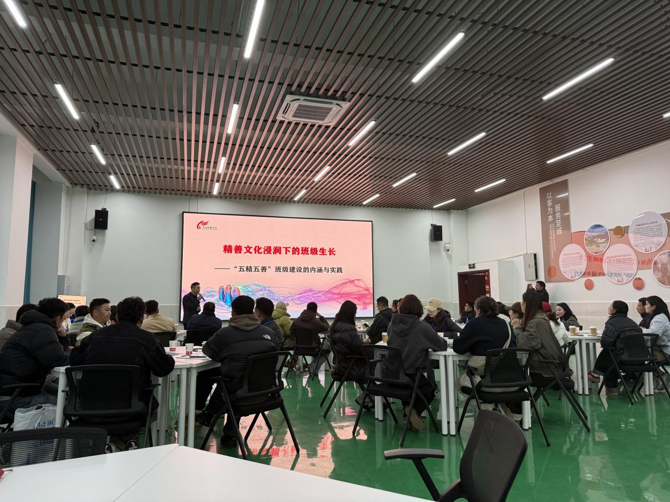 专题交流环节,大足职教中心刘武老师以《“精善文化”浸润下的班级生长——“五精五善”班级建设的内涵与实践》为题给来宾作专题讲座。刘老师聚焦“五精五善”(目标精准、制度精细、管理精心、活动精致、成果精进、善于沟通、善于引导、善于协作、善于包容、善于学习)系统分享了其在班级文化建设中的理念体系、实施路径与育人成效。