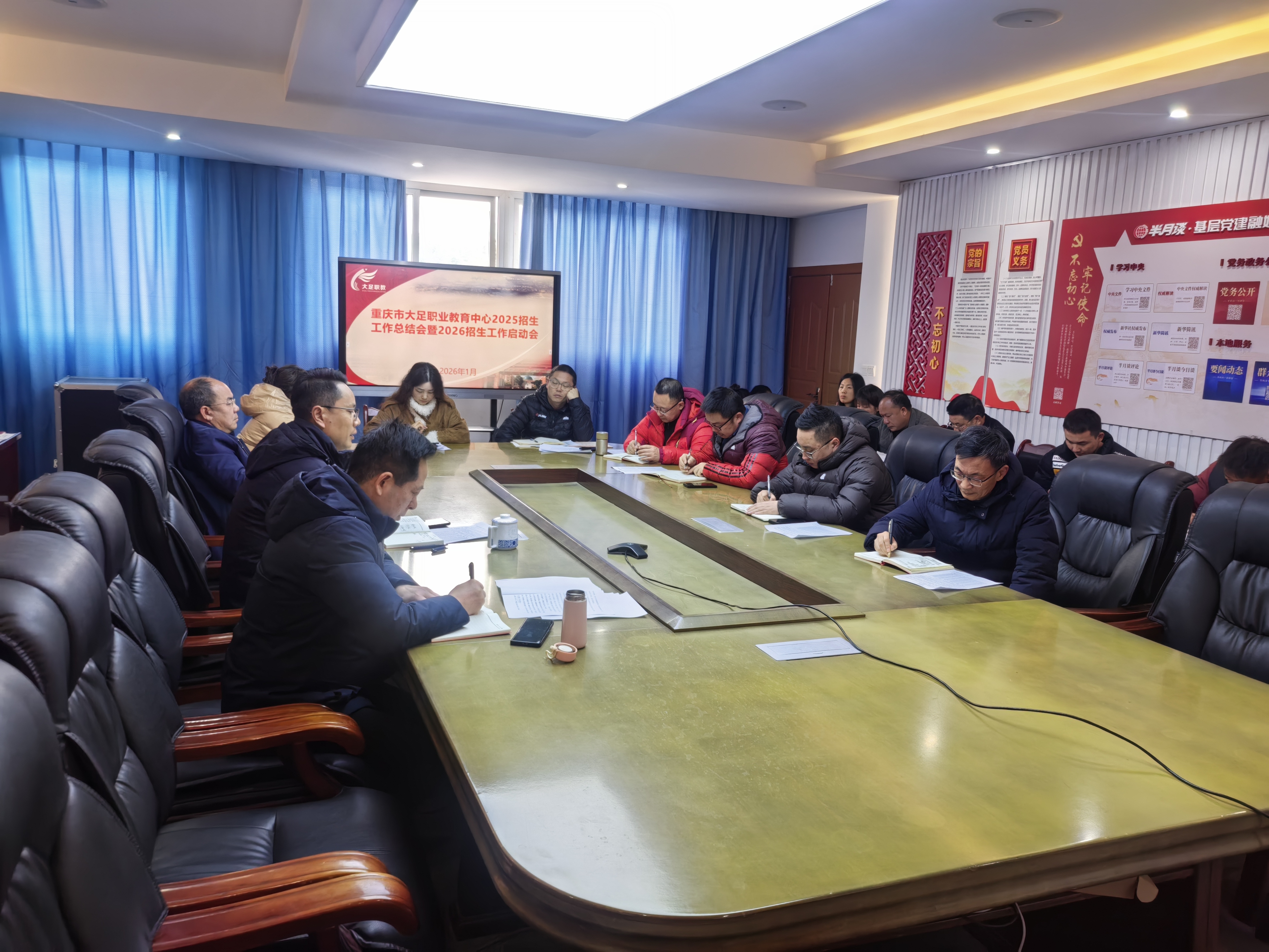 为全面复盘2025年招生工作成效,精准部署2026度招生工作攻坚任务,重庆市大足职业教育中心于2026年1月8日上午10:00,分校区同步召开2025招生总结暨2026招生工作启动会议。校领导班子成员、外联处全体人员、各专业系部负责人及招生小组工作人员参会。会议由学校党委委员、副校长朱元志主持。