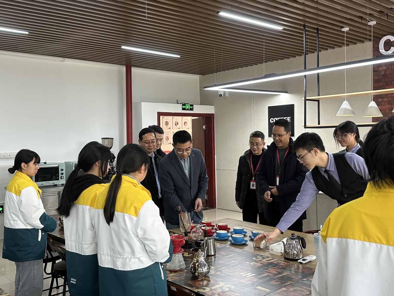 调研过程中,邓茂强常委一行实地走访了旅游实训室、3D打印实训室、无人机模拟飞行实训室等现代化实训场地,深入了解学校在专业建设、技能培训及设施配备方面的具体举措。随后,区领导参观了具有地方特色的石雕工坊与学校“四育”(德育、智育、体育、美育)教育基地,对学校融合地方文化、深化育人内涵的实践表示肯定。